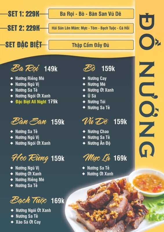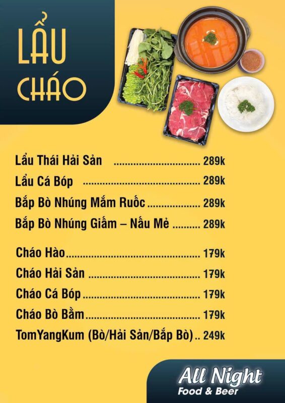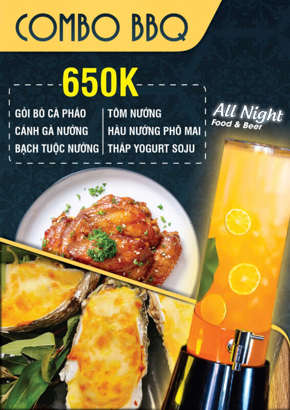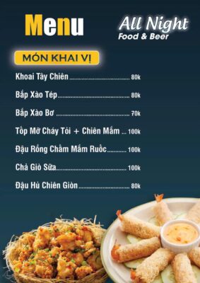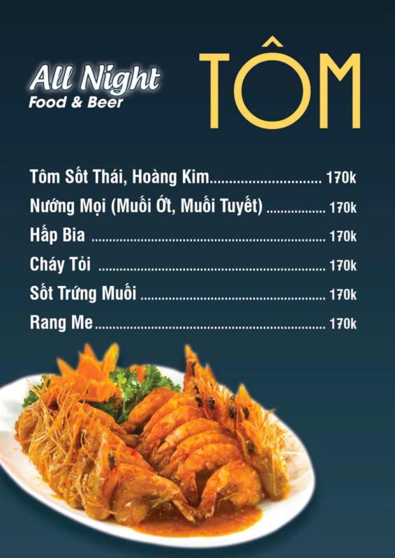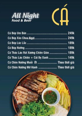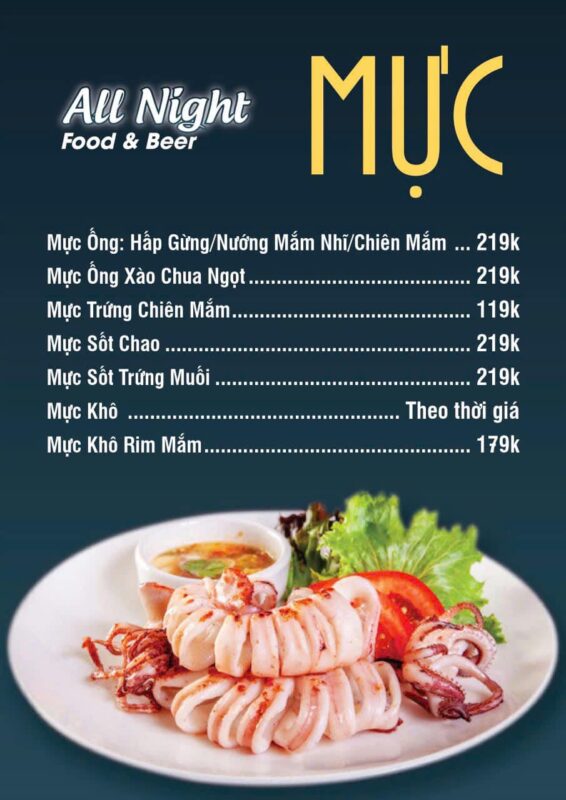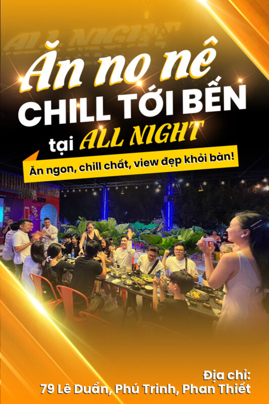 Menu đa dạng với nhiều món ngon bao gồm cả những món ăn đặc sản Phan Thiết. All Night là điểm đến được nhiều người dân địa phương và du khách lựa chọn